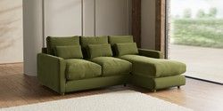 7.3.1 Buy N Premium Farndon Grand Relaxed Sit Medium Sofa Chaise - Right Hand Plush Velvet Easy Clean Mid Olive Green Wooden Glide - Light from the Seasons online shop