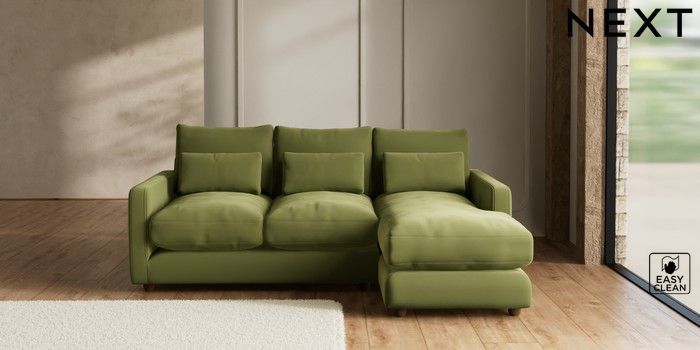 7.3.1 Buy N Premium Farndon Grand Relaxed Sit Medium Sofa Chaise - Right Hand Plush Velvet Easy Clean Mid Olive Green Wooden Glide - Mid from the Seasons online shop