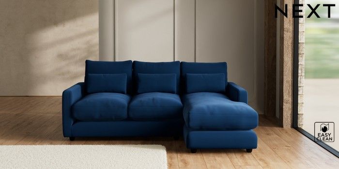 7.3.1 Buy N Premium Farndon Grand Relaxed Sit Medium Sofa Chaise - Right Hand Plush Velvet Easy Clean Navy Blue Wooden Glide - Dark from the Seasons online shop