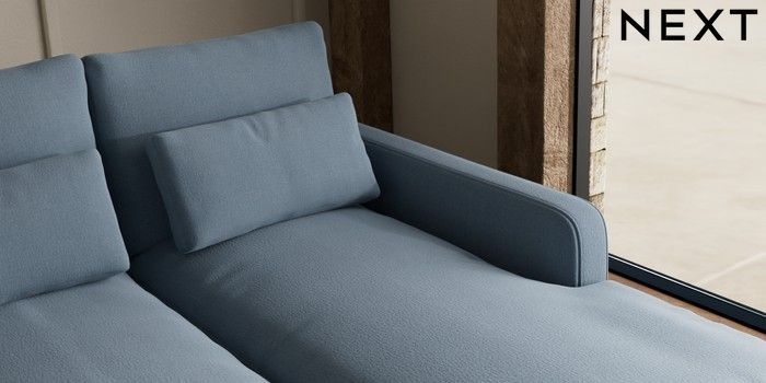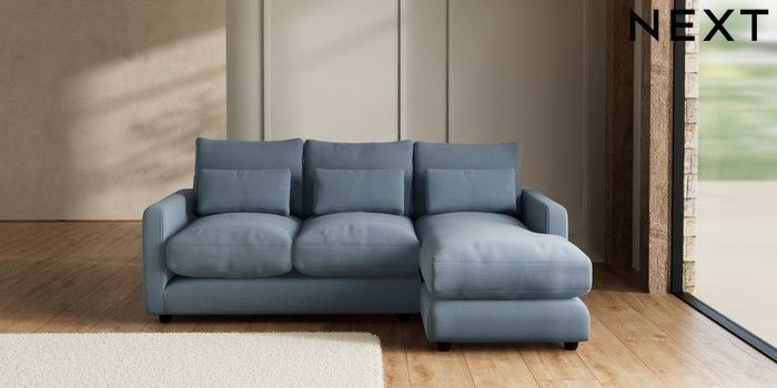 7.3.1 Buy N Premium Farndon Grand Relaxed Sit Medium Sofa Chaise - Right Hand Relaxed Linen Look Mid Blue Wooden Glide - Dark from the Seasons online shop Click here to use our website with more accessibility support, for example screen readers
