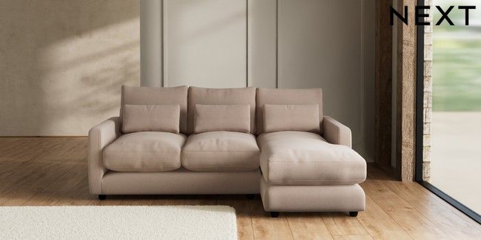 7.3.1 Buy N Premium Farndon Grand Relaxed Sit Medium Sofa Chaise - Right Hand Relaxed Linen Look Mid Natural Wooden Glide - Dark from the Seasons online shop