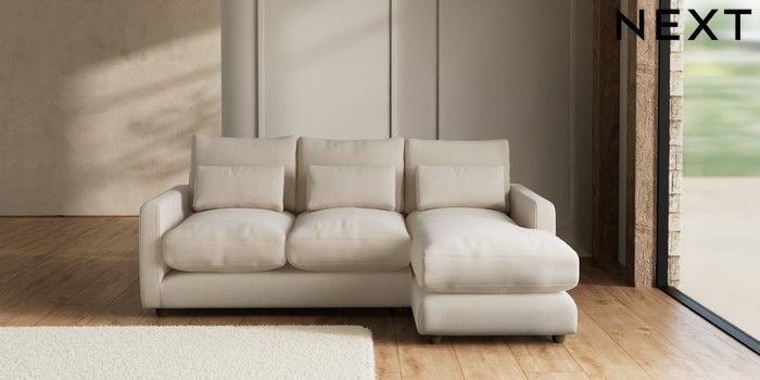 7.3.1 Buy N Premium Farndon Grand Relaxed Sit Medium Sofa Chaise - Right Hand Studio Chenille Oyster Wooden Glide - Mid from the Seasons online shop Click here to use our website with more accessibility support, for example screen readers