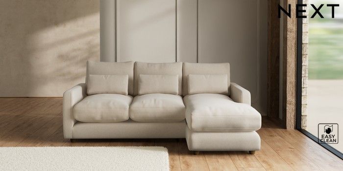 7.3.1 Buy N Premium Farndon Grand Relaxed Sit Medium Sofa Chaise - Right Hand Tweedy Blend Easy Clean Oyster Wooden Glide - Mid from the Seasons online shop