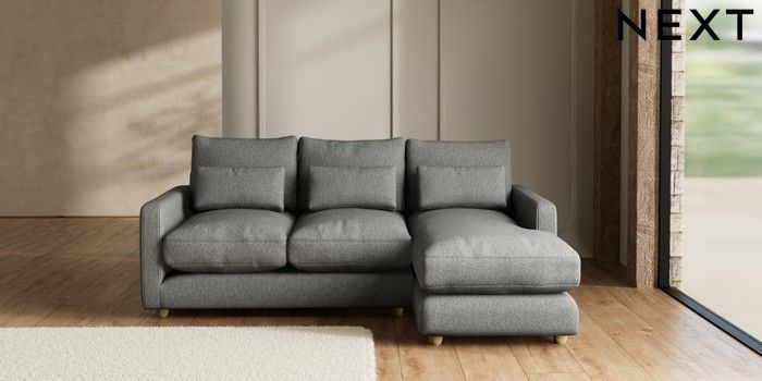 7.3.1 Buy N Premium Farndon Grand Relaxed Sit Medium Sofa Chaise - Right Hand Tweedy Chenille Dark Grey Wooden Glide - Light from the Seasons online shop Click here to use our website with more accessibility support, for example screen readers