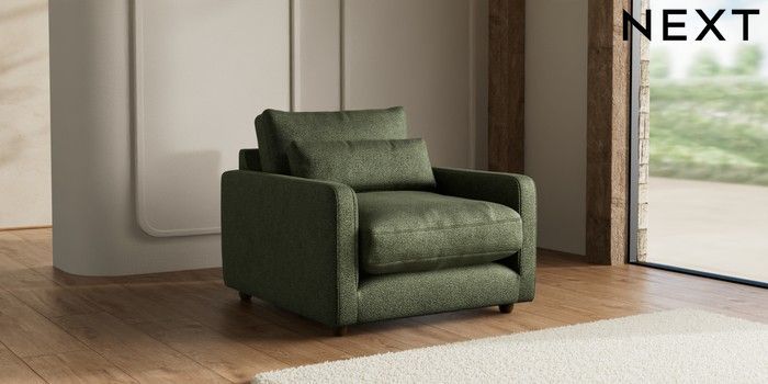 7.3.1 Buy N Premium Farndon Grand Relaxed Sit Snuggle Boucle Chenille Dark Moss Green Wooden Glide - Mid from the Seasons online shop