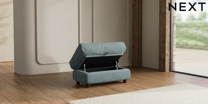 7.3.1 Buy N Premium Farndon Grand Relaxed Sit Storage Footstool Chunky Chenille Light Teal Green Wooden Glide - Mid from the Seasons online shop Click here to use our website with more accessibility support, for example screen readers