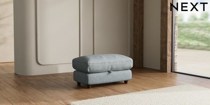 7.3.1 Buy N Premium Farndon Grand Relaxed Sit Storage Footstool Chunky Weave Mid Blue Wooden Glide - Mid from the Seasons online shop Click here to use our website with more accessibility support, for example screen readers