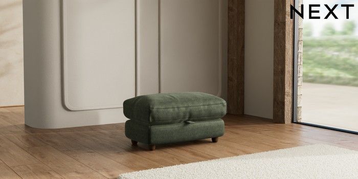 7.3.1 Buy N Premium Farndon Grand Relaxed Sit Storage Footstool Luxe Chenille Mid Green Wooden Glide - Mid from the Seasons online shop Click here to use our website with more accessibility support, for example screen readers