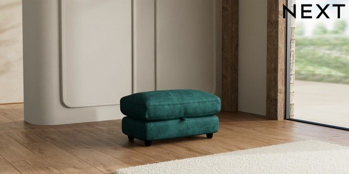 7.3.1 Buy N Premium Farndon Grand Relaxed Sit Storage Footstool Plush Chenille Dark Teal Green Wooden Glide - Dark from the Seasons online shop