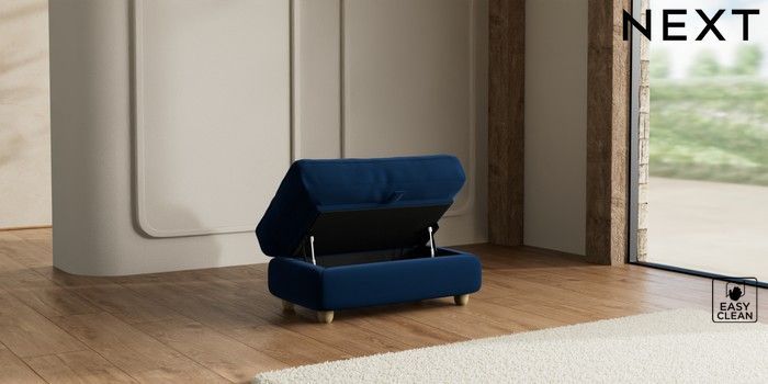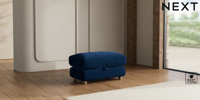7.3.1 Buy N Premium Farndon Grand Relaxed Sit Storage Footstool Plush Velvet Easy Clean Navy Blue Wooden Glide - Light from the Seasons online shop