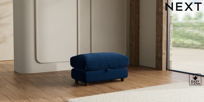 7.3.1 Buy N Premium Farndon Grand Relaxed Sit Storage Footstool Plush Velvet Easy Clean Navy Blue Wooden Glide - Mid from the Seasons online shop