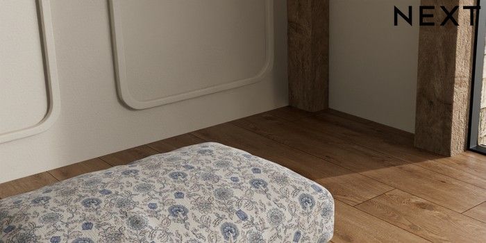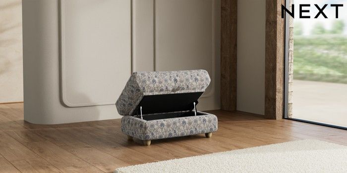 7.3.1 Buy N Premium Farndon Grand Relaxed Sit Storage Footstool Relaxed Linen Look Print Woodblock Floral Blue Wooden Glide - Light from the Seasons online shop