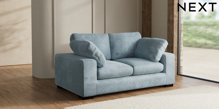 7.3.1 Buy N Premium The Snuggle Grand 2 Seater Sofa Plush Chenille Light Blue Large Square Angle - Dark from the Seasons online shop Click here to use our website with more accessibility support, for example screen readers