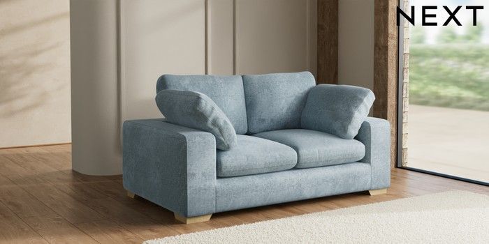 7.3.1 Buy N Premium The Snuggle Grand 2 Seater Sofa Plush Chenille Light Blue Large Square Angle - Light from the Seasons online shop Click here to use our website with more accessibility support, for example screen readers