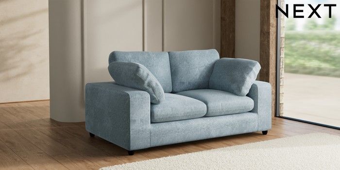 7.3.1 Buy N Premium The Snuggle Grand 2 Seater Sofa Plush Chenille Light Blue Wooden Glide - Dark from the Seasons online shop Click here to use our website with more accessibility support, for example screen readers