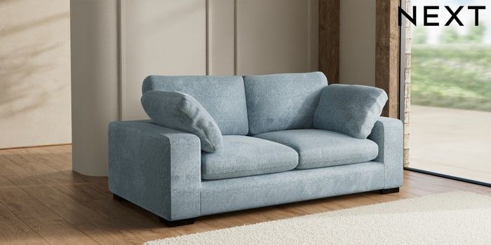 7.3.1 Buy N Premium The Snuggle Grand 3 Seater Sofa Plush Chenille Light Blue Large Square Angle - Dark from the Seasons online shop Click here to use our website with more accessibility support, for example screen readers