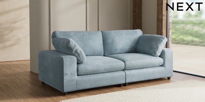 7.3.1 Buy N Premium The Snuggle Grand 4 Seater Large Sofa Plush Chenille Light Blue Wooden Glide - Mid from the Seasons online shop Click here to use our website with more accessibility support, for example screen readers