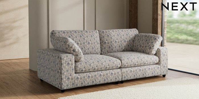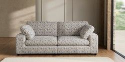 7.3.1 Buy N Premium The Snuggle Grand 4 Seater Large Sofa Relaxed Linen Look Print Woodblock Floral Blue Wooden Glide - Dark from the Seasons online shop