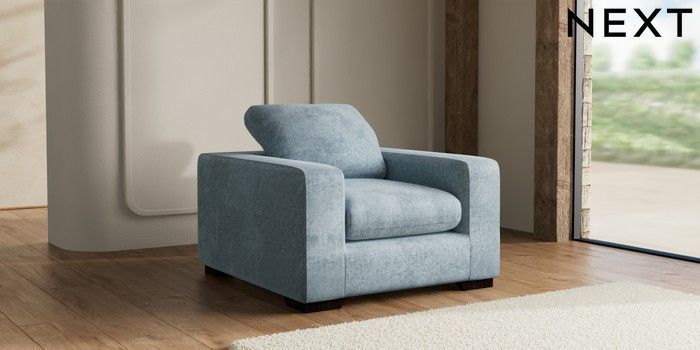 7.3.1 Buy N Premium The Snuggle Grand Armchair Plush Chenille Light Blue Large Square Angle - Dark from the Seasons online shop Click here to use our website with more accessibility support, for example screen readers