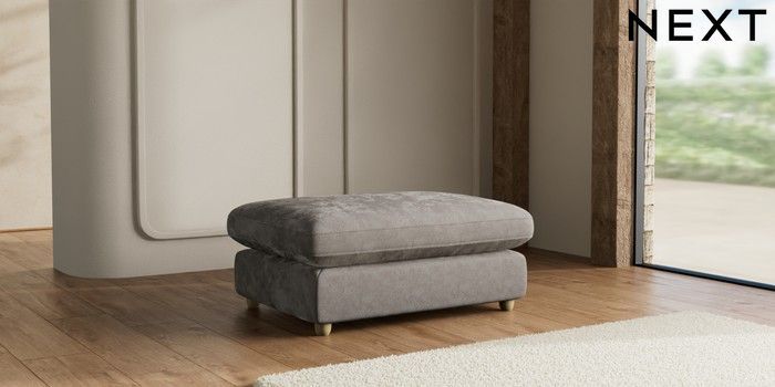 7.3.1 Buy N Premium The Snuggle Grand Extra Large Footstool Distressed Velour French Grey Wooden Glide - Light from the Seasons online shop
