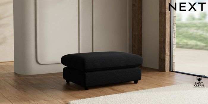 7.3.1 Buy N Premium The Snuggle Grand Extra Large Footstool Fine Chenille Easy Clean Black Wooden Glide - Dark from the Seasons online shop
