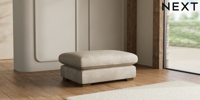 7.3.1 Buy N Premium The Snuggle Grand Extra Large Footstool Plush Chenille Light Natural Square Angle - Mid from the Seasons online shop Click here to use our website with more accessibility support, for example screen readers
