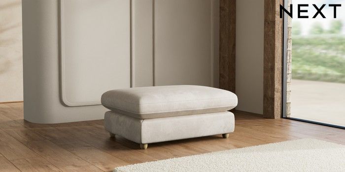 7.3.1 Buy N Premium The Snuggle Grand Extra Large Footstool Plush Chenille Oyster Wooden Glide - Light from the Seasons online shop Click here to use our website with more accessibility support, for example screen readers