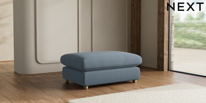7.3.1 Buy N Premium The Snuggle Grand Extra Large Footstool Relaxed Linen Look Mid Blue Wooden Glide - Light from the Seasons online shop