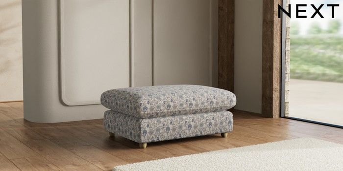 7.3.1 Buy N Premium The Snuggle Grand Extra Large Footstool Relaxed Linen Look Print Woodblock Floral Blue Wooden Glide - Light from the Seasons online shop
