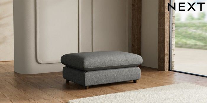 7.3.1 Buy N Premium The Snuggle Grand Extra Large Footstool Tweedy Chenille Dark Grey Wooden Glide - Mid from the Seasons online shop