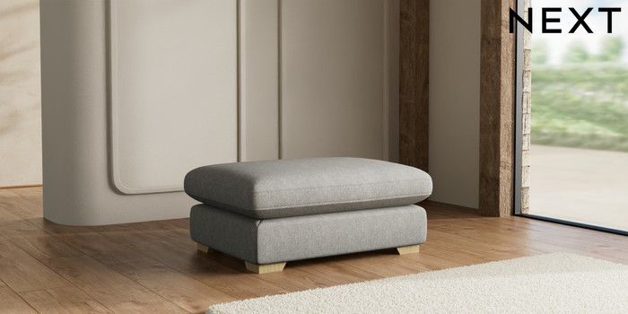 7.3.1 Buy N Premium The Snuggle Grand Extra Large Footstool Tweedy Chenille Mid Grey Square Angle - Light from the Seasons online shop Click here to use our website with more accessibility support, for example screen readers