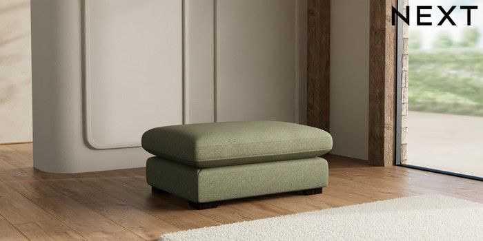7.3.1 Buy N Premium The Snuggle Grand Extra Large Footstool Tweedy Chenille Mid Moss Green Square Angle - Dark from the Seasons online shop Click here to use our website with more accessibility support, for example screen readers