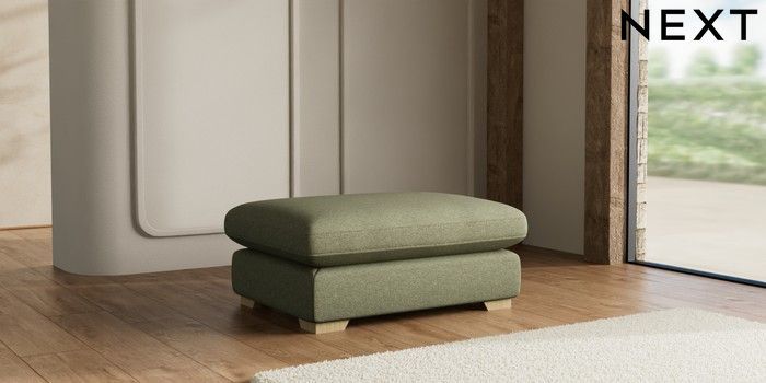 7.3.1 Buy N Premium The Snuggle Grand Extra Large Footstool Tweedy Chenille Mid Moss Green Square Angle - Light from the Seasons online shop Click here to use our website with more accessibility support, for example screen readers