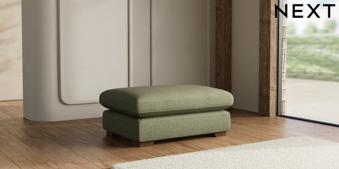 7.3.1 Buy N Premium The Snuggle Grand Extra Large Footstool Tweedy Chenille Mid Moss Green Square Angle - Mid from the Seasons online shop Click here to use our website with more accessibility support, for example screen readers