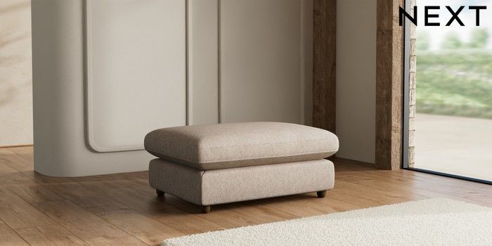 7.3.1 Buy N Premium The Snuggle Grand Extra Large Footstool Tweedy Chenille Mid Natural Wooden Glide - Mid from the Seasons online shop