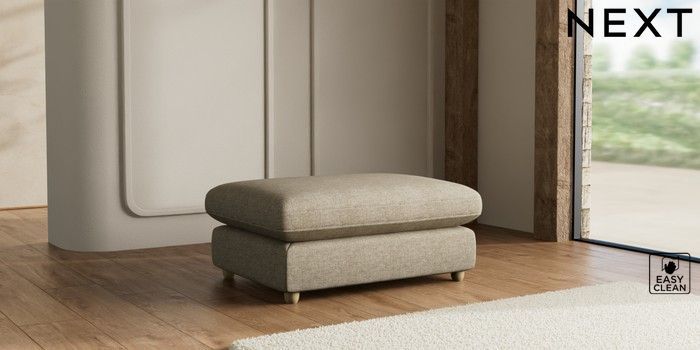 7.3.1 Buy N Premium The Snuggle Grand Extra Large Footstool Woven Chenille Easy Clean Mid Natural Wooden Glide - Light from the Seasons online shop