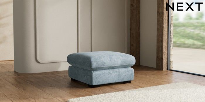 7.2.10 Buy N Premium The Snuggle Grand Footstool Plush Chenille Light Blue Square Angle - Dark from the Seasons online shop Click here to use our website with more accessibility support, for example screen readers