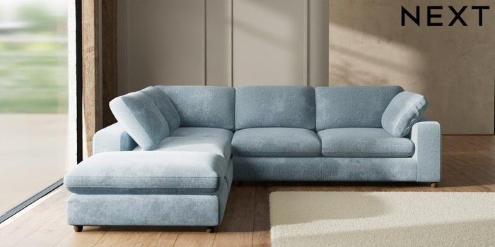 7.3.1 Buy N Premium The Snuggle Grand Large Open End Corner Chaise - Left Hand Plush Chenille Light Blue Wooden Glide - Mid from the Seasons online shop Click here to use our website with more accessibility support, for example screen readers