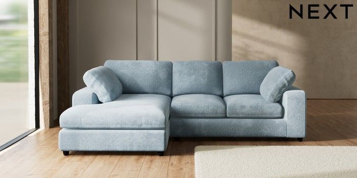 7.3.1 Buy N Premium The Snuggle Grand Medium Corner Chaise - Left Hand Plush Chenille Light Blue Wooden Glide - Dark from the Seasons online shop Click here to use our website with more accessibility support, for example screen readers