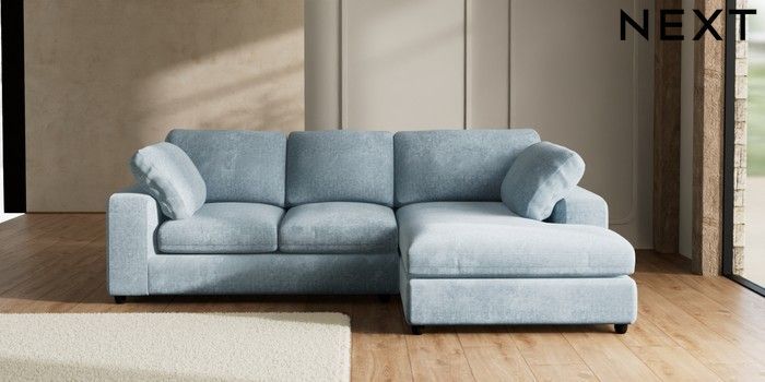 7.3.1 Buy N Premium The Snuggle Grand Medium Corner Chaise - Right Hand Plush Chenille Light Blue Wooden Glide - Dark from the Seasons online shop Click here to use our website with more accessibility support, for example screen readers