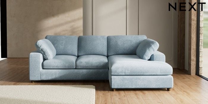 7.3.1 Buy N Premium The Snuggle Grand Medium Corner Chaise - Right Hand Plush Chenille Light Blue Wooden Glide - Mid from the Seasons online shop Click here to use our website with more accessibility support, for example screen readers