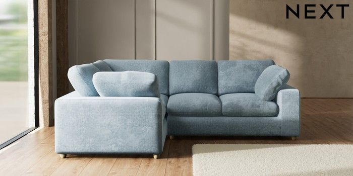 7.3.1 Buy N Premium The Snuggle Grand Medium Corner Sofa - Left Hand Plush Chenille Light Blue Wooden Glide - Light from the Seasons online shop Click here to use our website with more accessibility support, for example screen readers