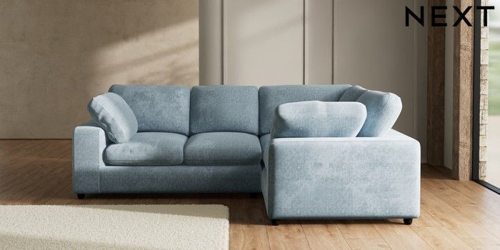 7.3.1 Buy N Premium The Snuggle Grand Medium Corner Sofa - Right Hand Plush Chenille Light Blue Wooden Glide - Dark from the Seasons online shop Click here to use our website with more accessibility support, for example screen readers