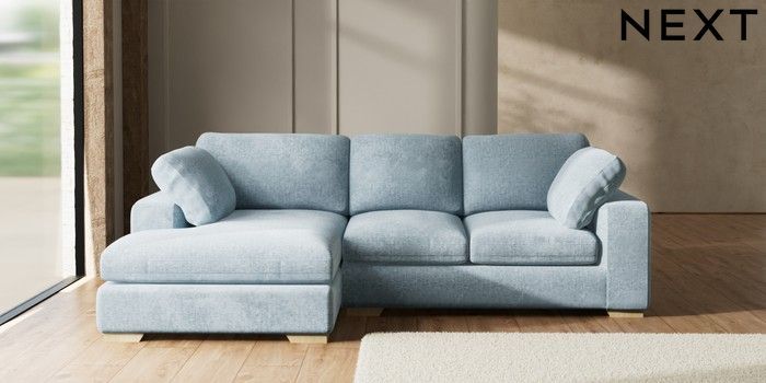 7.2.10 Buy N Premium The Snuggle Grand Medium Sofa Chaise - Left Hand Plush Chenille Light Blue Large Square Angle - Light from the Seasons online shop Click here to use our website with more accessibility support, for example screen readers