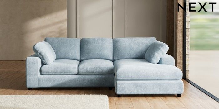 7.3.1 Buy N Premium The Snuggle Grand Medium Sofa Chaise - Right Hand Plush Chenille Light Blue Wooden Glide - Dark from the Seasons online shop Click here to use our website with more accessibility support, for example screen readers