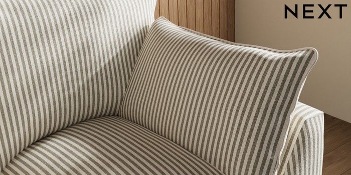 7.3.1 Buy Noa Deep Relaxed Sit 2 Seater Small Sofa Chenille Stripe Moss Green High Leg - Mid from the Seasons online shop Click here to use our website with more accessibility support, for example screen readers
