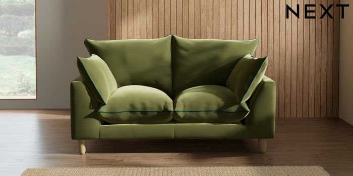 7.3.1 Buy Noa Deep Relaxed Sit 2 Seater Small Sofa Plush Velvet with Contrast Mid Olive Grn with Juniper Grn High Leg - Light from the Seasons online shop Click here to use our website with more accessibility support, for example screen readers