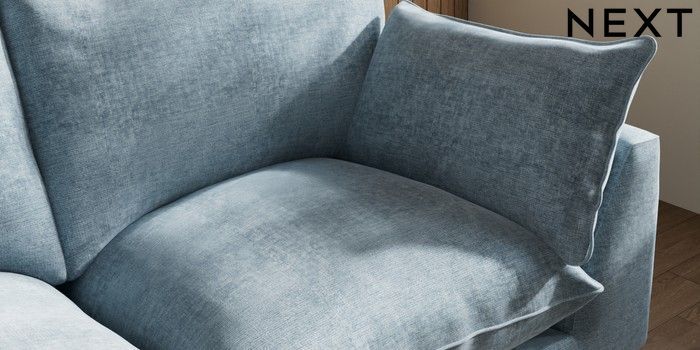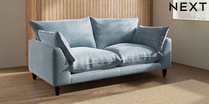 7.2.10 Buy Noa Deep Relaxed Sit 3 Seater Small Sofa Plush Chenille Light Blue High Leg - Dark from the Seasons online shop Click here to use our website with more accessibility support, for example screen readers