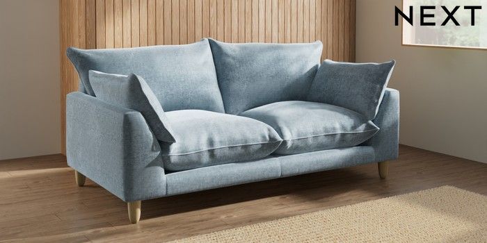 7.2.10 Buy Noa Deep Relaxed Sit 3 Seater Small Sofa Plush Chenille Light Blue High Leg - Light from the Seasons online shop Click here to use our website with more accessibility support, for example screen readers