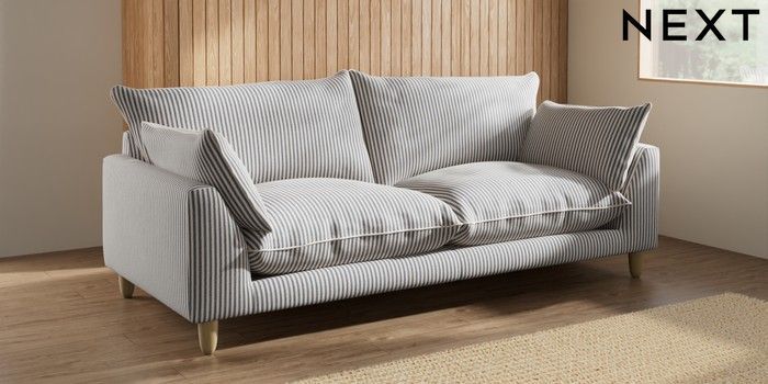 7.3.1 Buy Noa Deep Relaxed Sit 3 Seater Sofa Chenille Stripe Slate Blue High Leg - Light from the Seasons online shop Click here to use our website with more accessibility support, for example screen readers